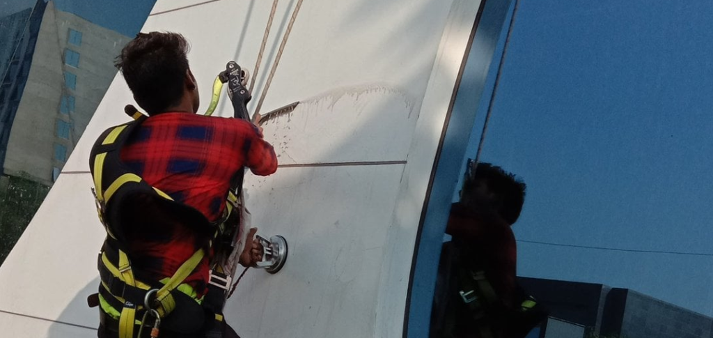 Yes, we offer professional facade and glass cleaning services using safe techniques and proper safety equipment.